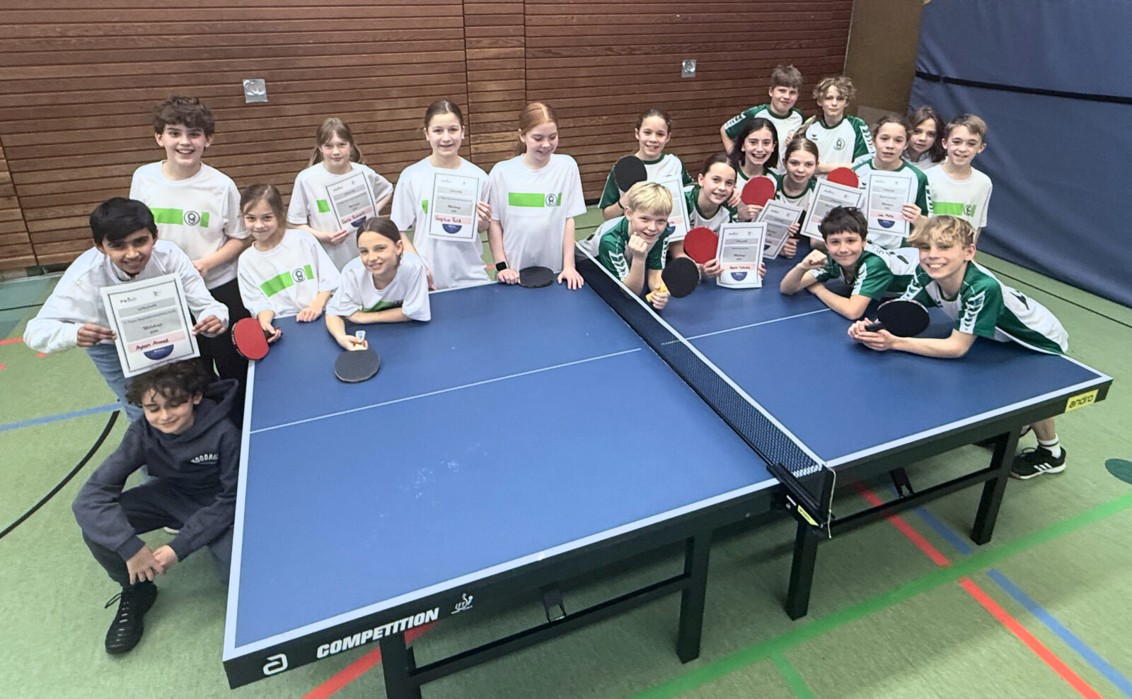 In der Sporthalle trafen die besten Tischtennis-Teams der Jahrgangsstufen 5 und 6 der Schule aufeinander und lieferten sich spannende Duelle…